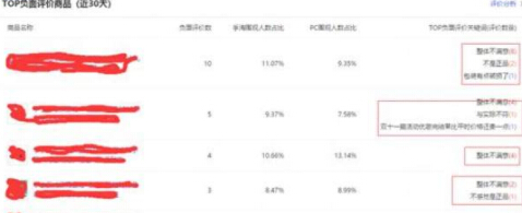 分析完流量的引入,后面就需要看产品整体服务指标了,点击品类找到商品360,然后找到我们需要分析的产品,然后点击服务这一项就可以看到上图的这一项,可以看到产品最近一个月的整体评价走势,发现商品每日评价波动很大,主动评价数量不是很多并且晒图的更少,还有就是产品每周都会产生一个差评,这些数据表示我们产品需要主动引导客户去进行正面的有图评价,可以在包裹放入产品售后服务卡来减少增加评价以及减少产品,或者在店铺策划评价晒图领取奖励的活动,然后每日观察产品的评价波动情况,来进行活动的优化,如果数据在变好就证明活动是有用的,如果没有改变或者变化太小就需要我们改变活动或者增加活动力度,从而增加产品评价晒图的递增,从而增加产品权重和转化率。