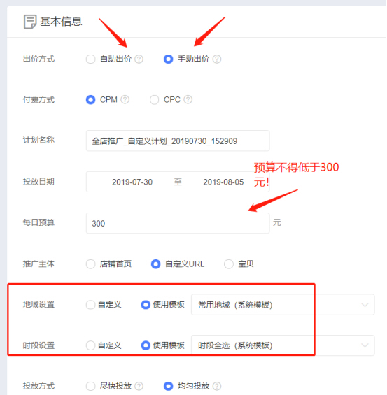 这里有自动出价和手动出价,淘宝代运营建议大家选择手动出价,可以修改。