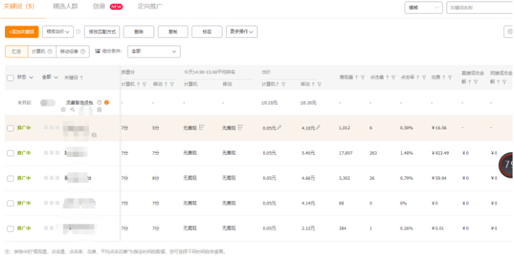 我有见过很多直通车新手一次性开30、50甚至100个关键词,以为这样的方式能够获取的流量就更多,其实不是,你选择的关键词如果和你自己的产品不相符,那么肯定是会影响到直通车里的质量分中的相关性的,并且对于展现方面肯定是大打折扣,日限额可能也就100-200,而100个词去平摊,又能摊到多少呢?我们在选择关键词的时候,优先去选择点击率高的词,展现在5000-20000,关键词需要和你的宝贝一定是相关的,并且质量分在7分以上,只添加5-15个词就够了。