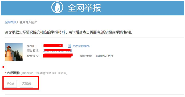 第二步:选择举报类型,无线端or电脑端(pc端)